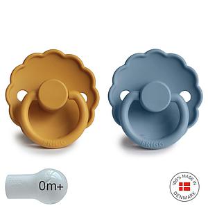 Pack 2 Chupetes FRIGG Block Silicona DAISY 0-6m Honey Gold/Glacier Blue
