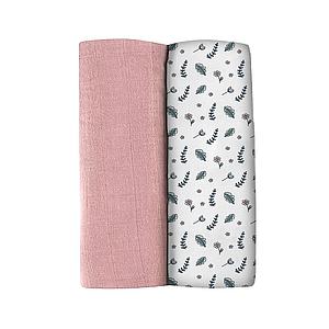 SET 2 MUSELINAS XL 120X120CM 100% ALGODON ORGANICO BRIDAL PINK / FLOWERY COUNTRYSIDE
